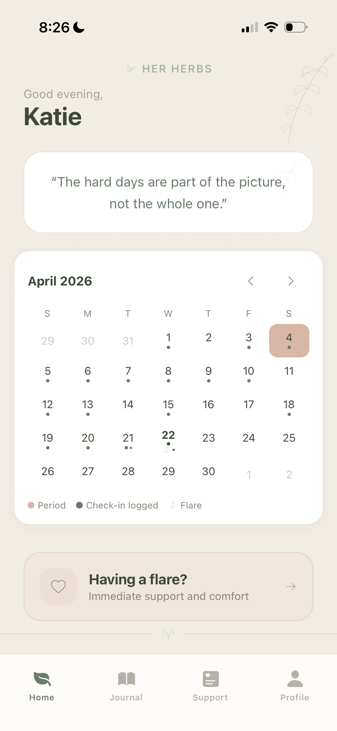 HER HERBS · ENDOMETRIOSIS COMPANION APP