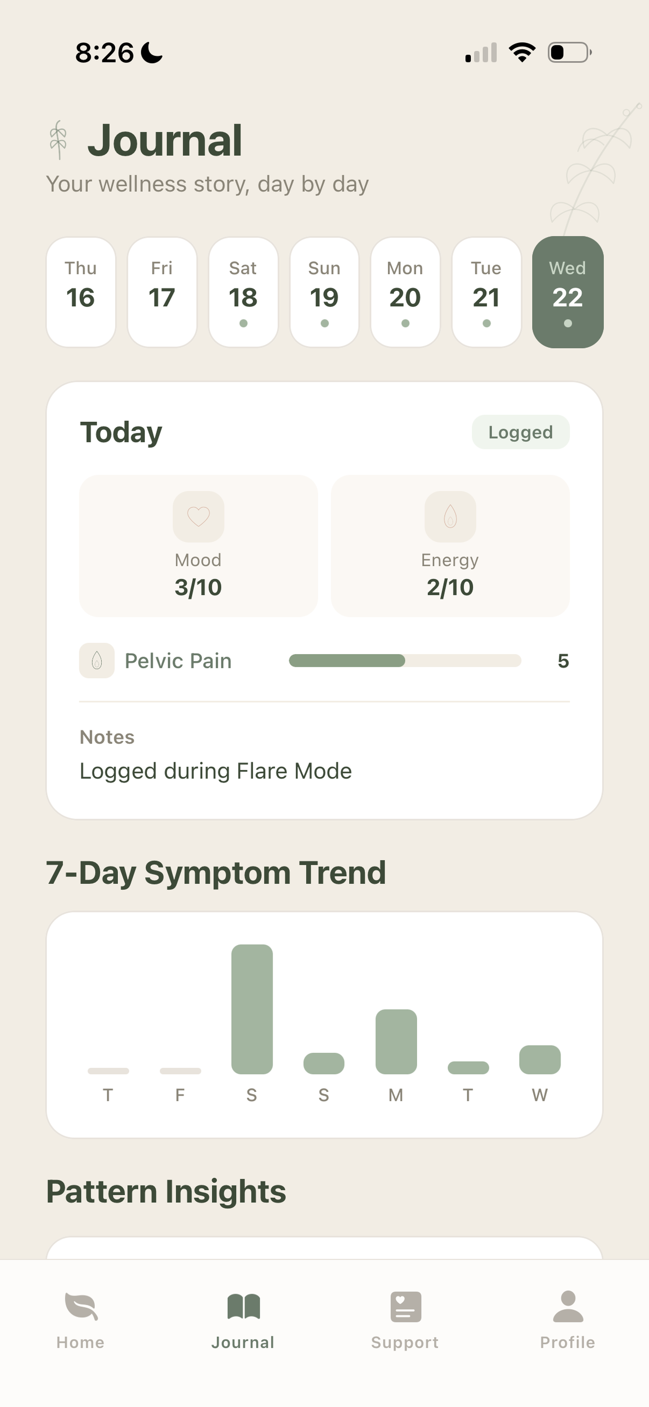 Log pain, fatigue, bloating, mood and flow daily. Patterns emerge over time and patterns lead to answers.