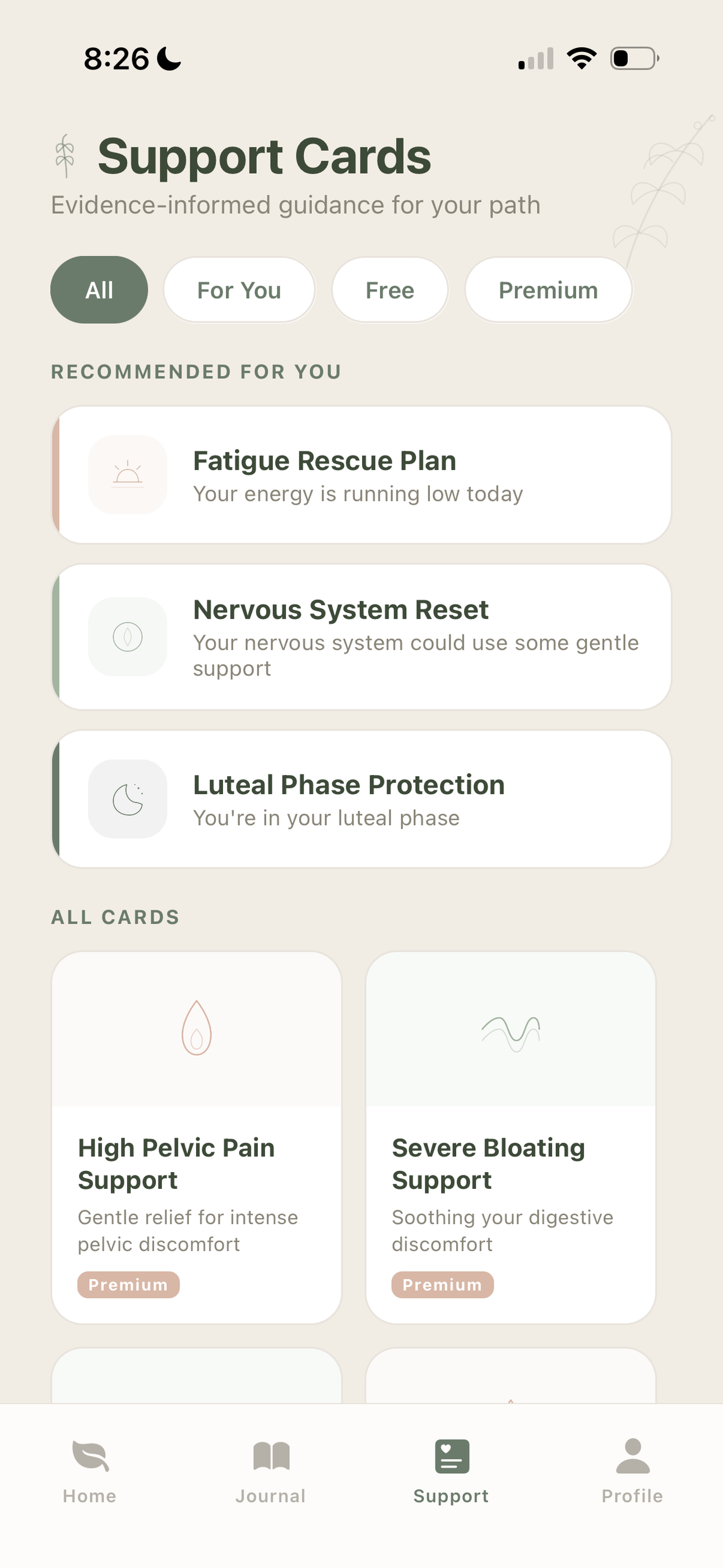 The support card library gives you real naturopathic education without the overwhelm of googling at midnight.
